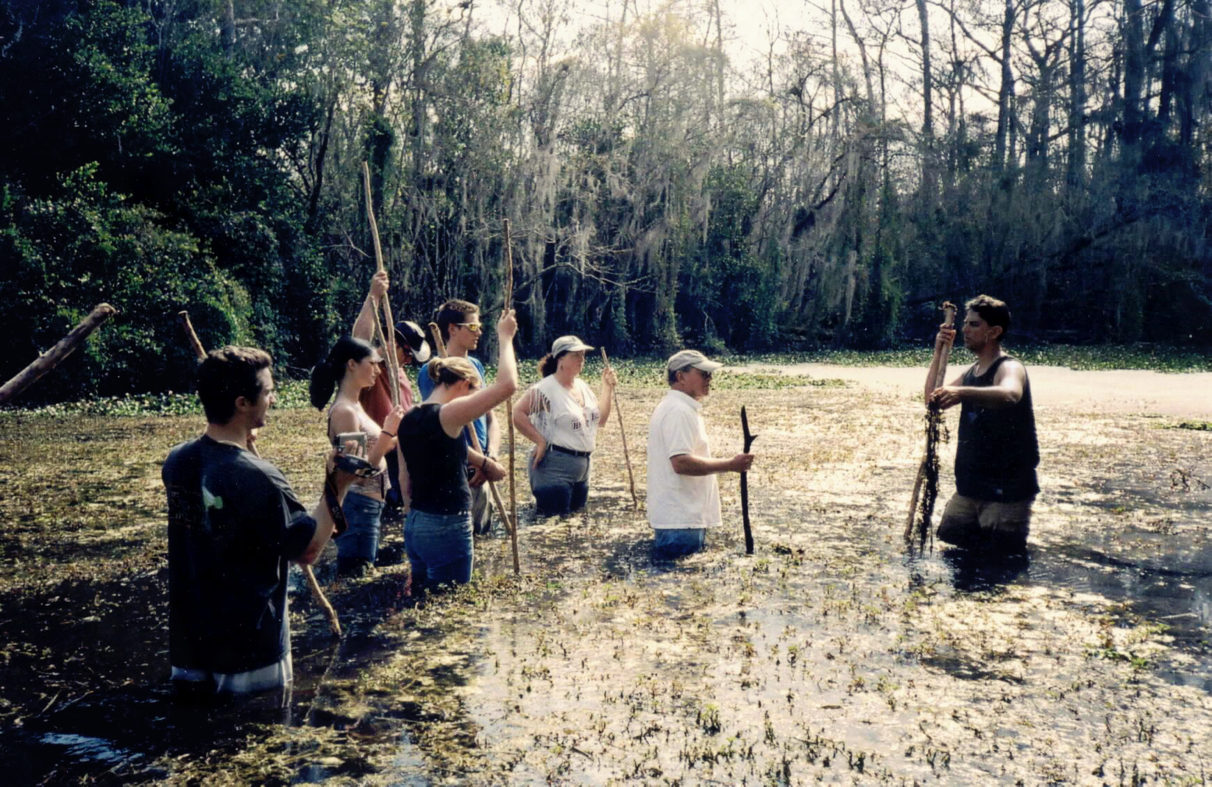 Seek out the family of wild gators that live near the big camp. If they care to show themselves, our guide will demonstrate his ability to “speak gator.” To the amazement of all, the gators respond.